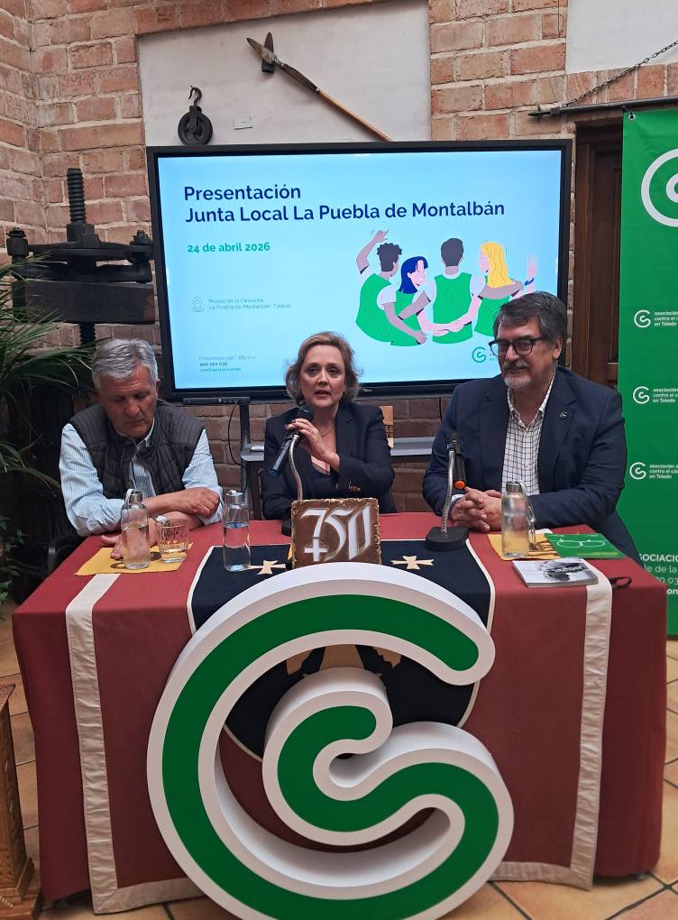 Presentación oficial de la junta local de la Asociación Española Contra el Cancer en #LaPueblaDeMontalbán. Intervienen Soledad de Frutos (alcaldesa), Fernando Jou (presidente provincial) y Rodolfo de los Reyes (presidente local) 24/04/26.